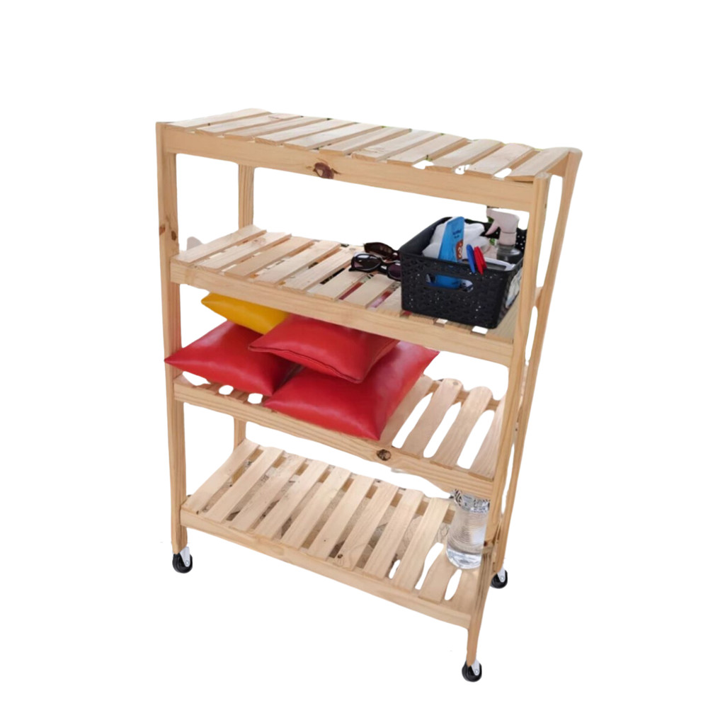 Estante Movel com 4 Prateleiras de Madeira Maciça Pinus 100x70 Com Rodinha
