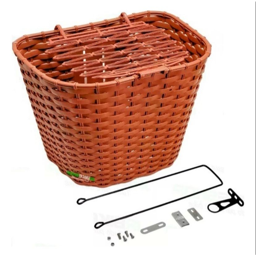 Cesta Cestinha Com Tampa de Plástico para Bicicleta Bike Aro 24 e 26 Grande Marrom Resistente Reforçada