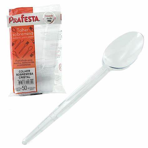 Colher de sobremesa branca descartável c/50 prafesta / ultatalher / strawplast