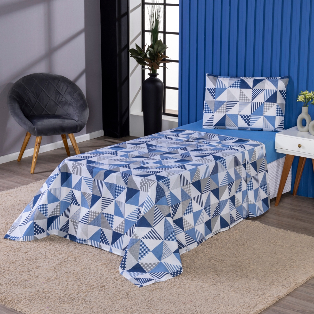 JOGO DE CAMA SOLTEIRO 3 PEÇAS ALGODÃO ESTAMPADO 180 FIOS