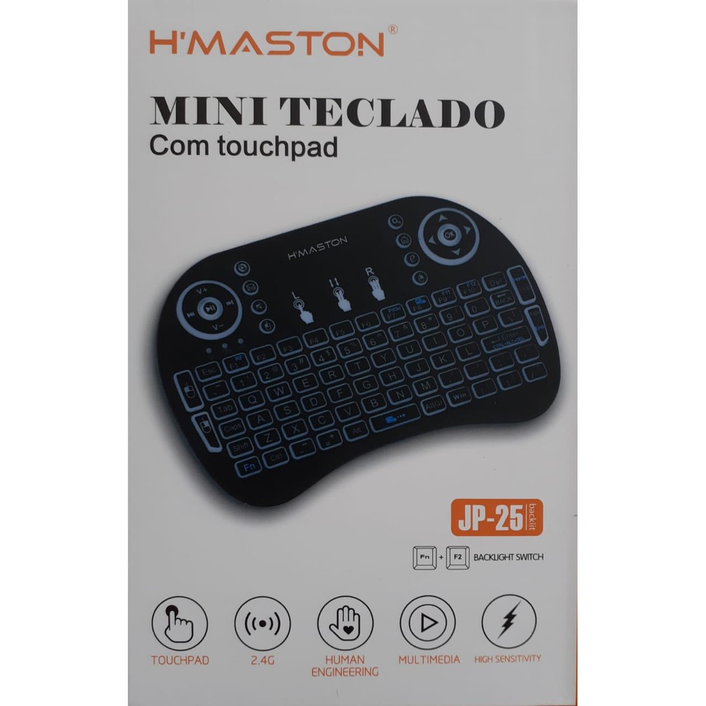 Mini Teclado Touch H'maston, Luz Colorida, Sem Fio, Para Tv, Videogame, Notebook - Jp-25
