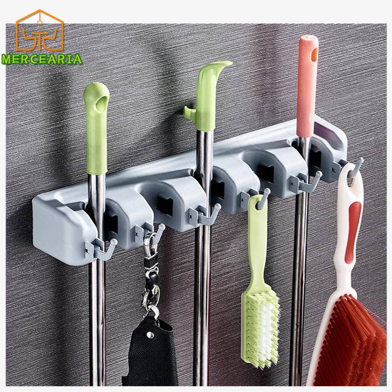 Suporte Organizador Multiuso 5 Lugares 6 Ganchos Porta Vassoura Rodo Chaves Posições
