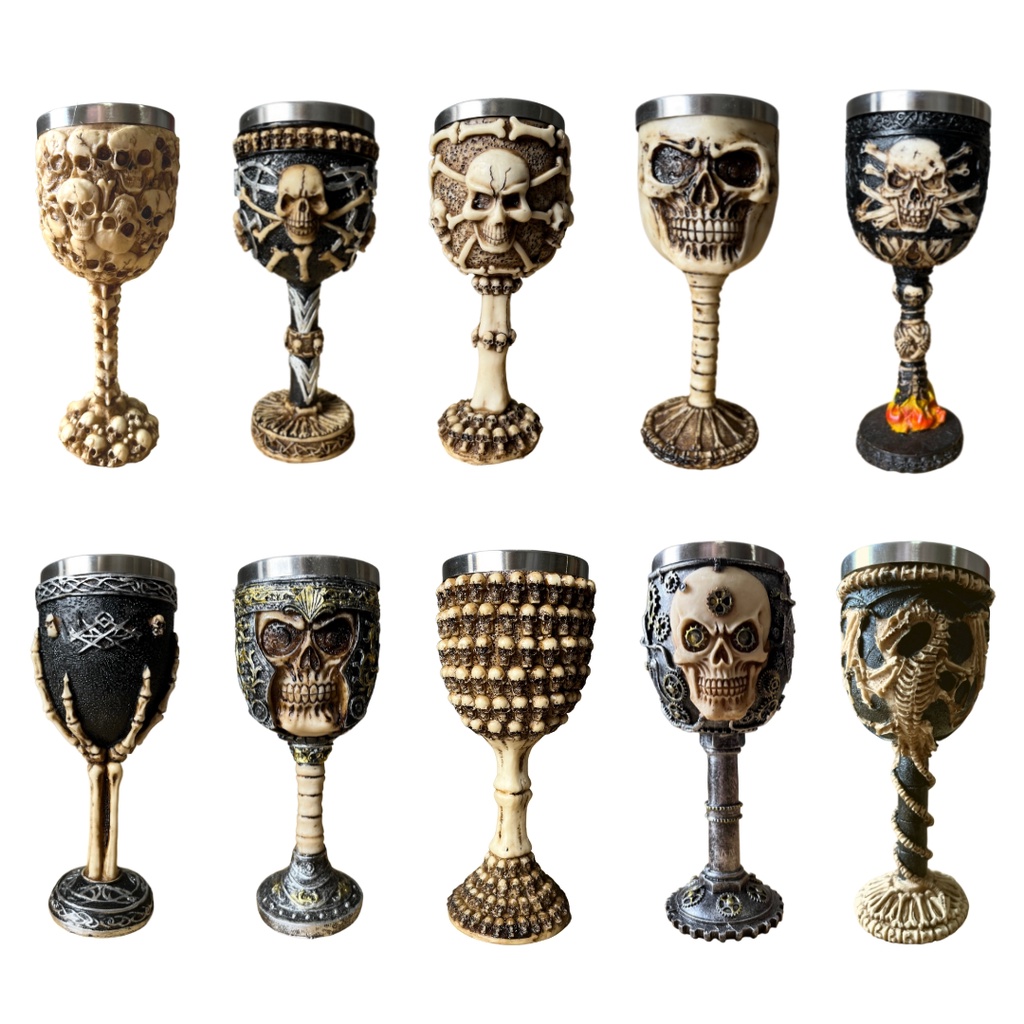 Taça Caneca Resina Inox Copo Caveira Cálice Crânios Dragão Caveira Medieval 200ml