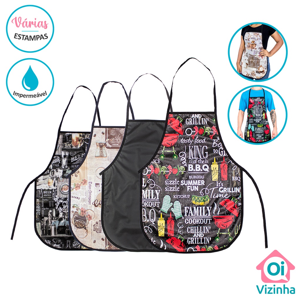 Avental de Cozinha Lavanderia Estampado Impermeável