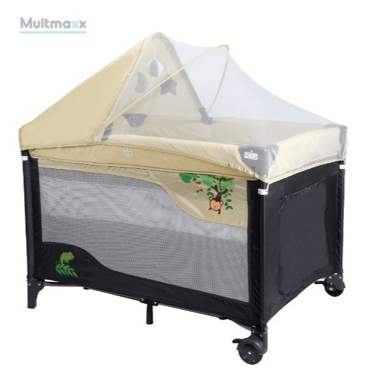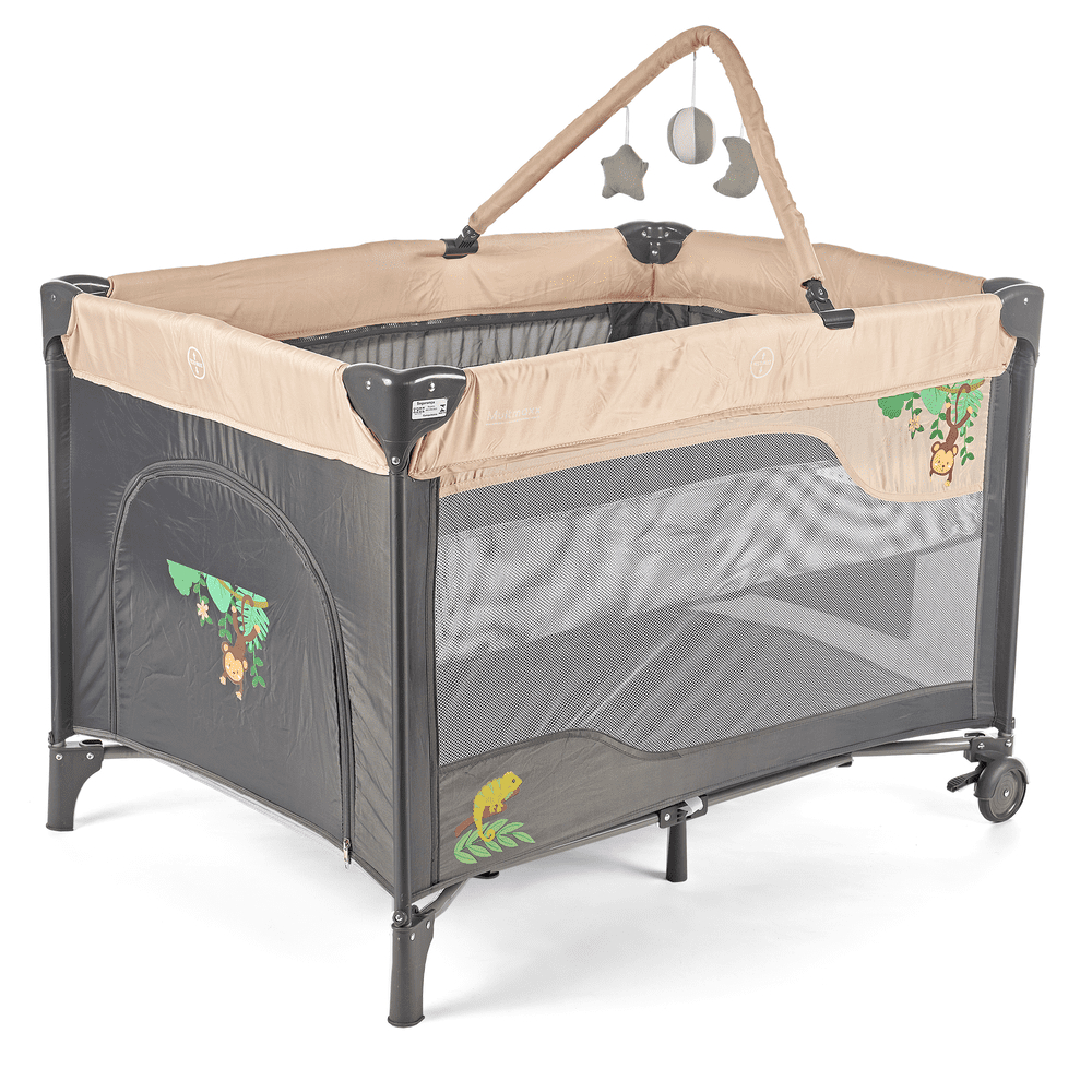 Berço Portátil Compacto Premium Multmaxx Chiqueirinho 2 Alturas Dobrável + 1 Bolsa Transporte e Mobile Preto/Marrom