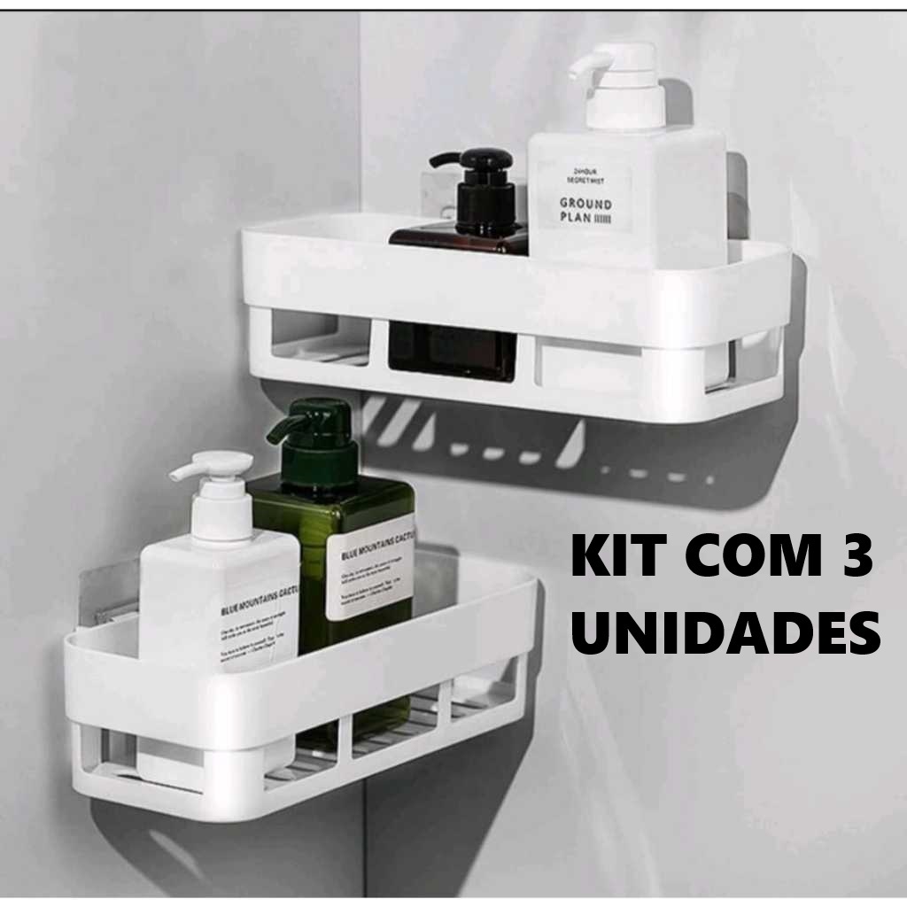 Kit Com 3 Suportes Prateleira Suporte Organizador Cozinha Banheiro Plástico Com Adesivo