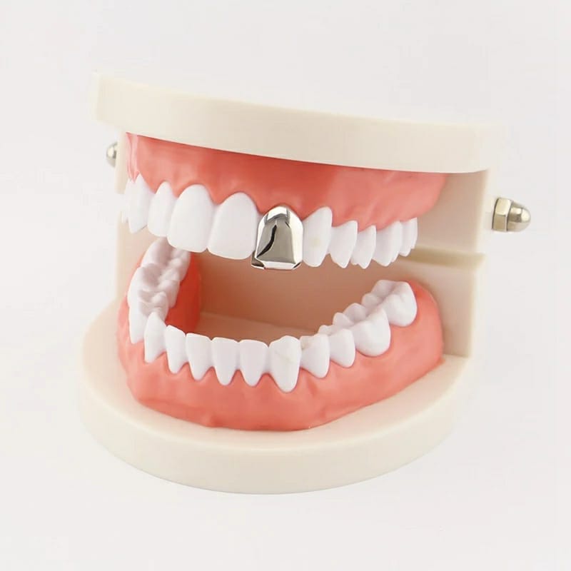 Grillz Unitário Hip Hop- Banhado A Prata Ice Para Dentes