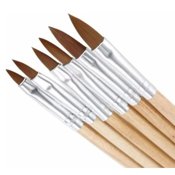 Kit 6 Pincéis Cerdas Naturais Kolinsky Língua De Gato Cabo De Madeira