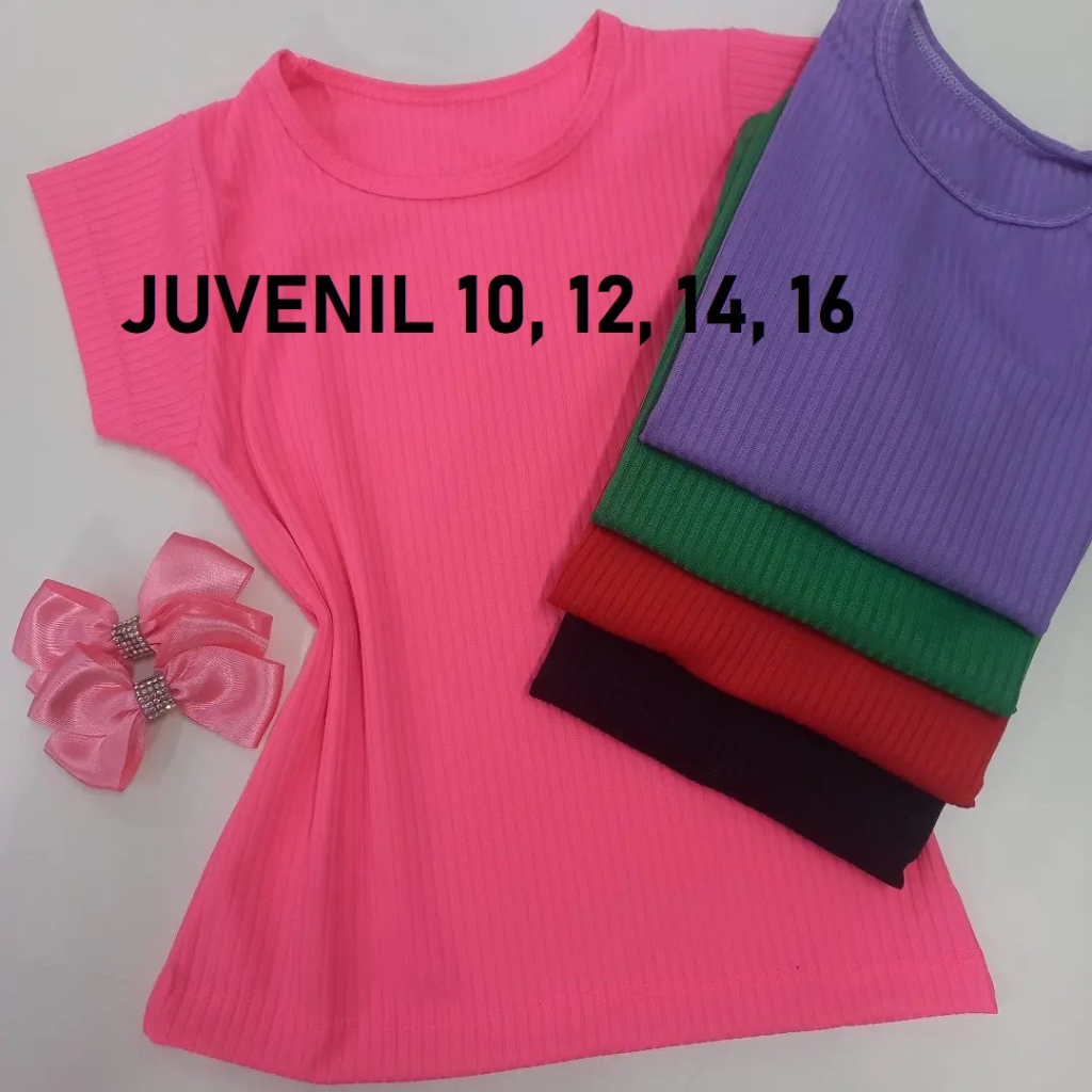 Blusa Juvenil Feminina Malha Canelada Manga Curta Infantil Temos Vermelha Para o Natal e Branca Para Ano Novo