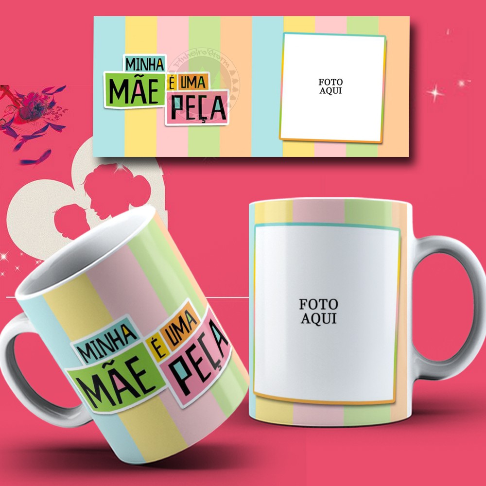 Caneca Minha Mãe é Uma Peça com Foto, Caneca de Porcelana Personalizada Para dia das Mães 325 ML