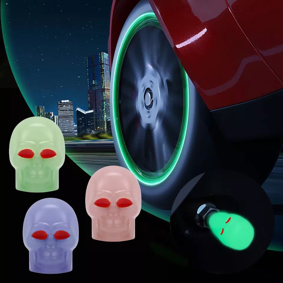 Bico pneu em formato de Caveira que Brilha no escuro tampa de pino de pneu para carro moto bicicleta