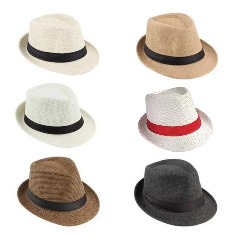 Chapéu de Adulto Estilo Panamá Malandro Moda Modelo Aba Pequena Clássico Sintético Fedora Masculino Feminino Unissex Pagode Pagodeiro Samba Sambista Baiano De Praia Verão Barato Turista Social Malandro Carioca Palha Adulto Diversas Cores SL Boa Sorte