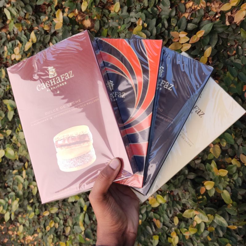 Alfajor Argentino Cachafaz sabores caixa com 6 unidades.
