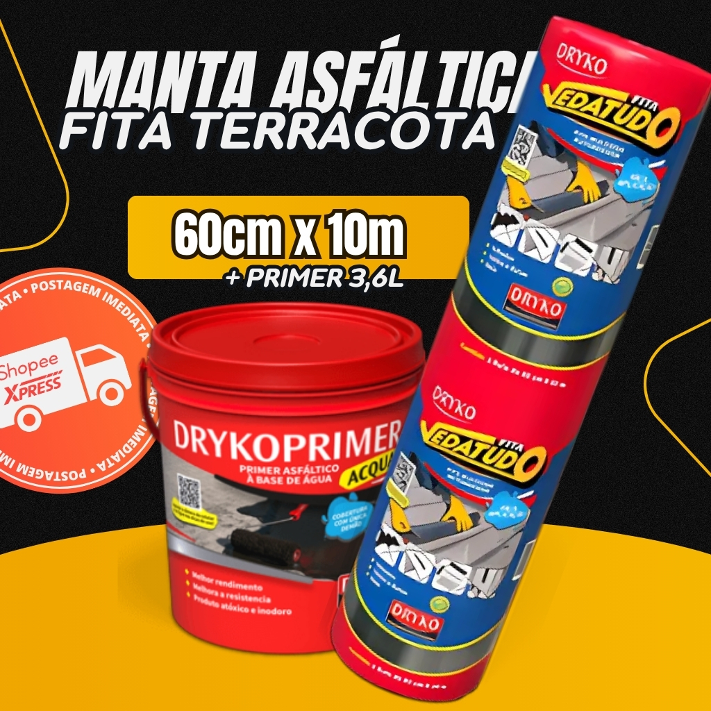 Manta Asfáltica 30cm 2un + Primer Asfáltico 3,6 Kit Aplicação Fita Metalizada Vedação Telha Vedatudo