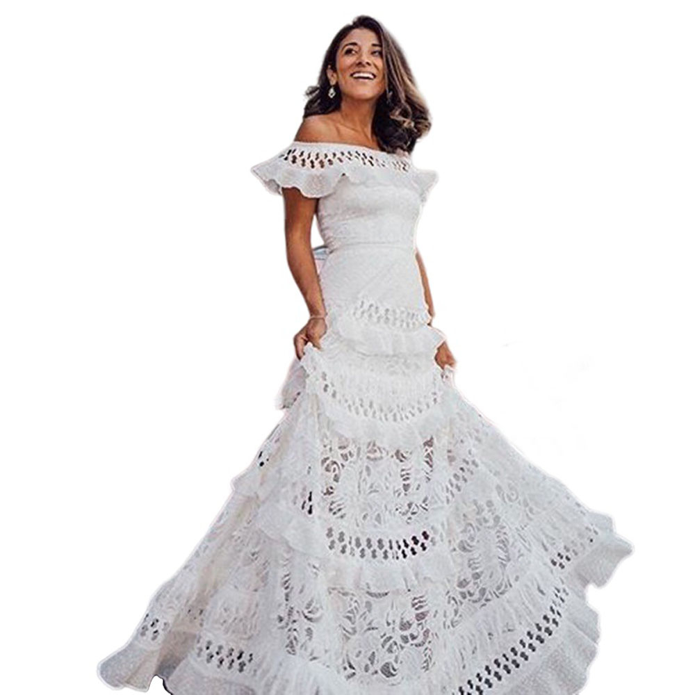 Vestido De Verão Feminino Elegante Bordado Em Emenda De Renda Oco Fora Oferta Ombro Romântico Ruffle Hem Férias Long Dresse