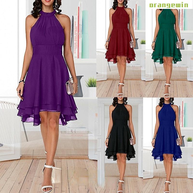 Vestido Elegante De Verão Sólido Cintura Alta Sem Mangas Vestidos Midi Femininos Cortados Em Camada Chiffon Festa Slim