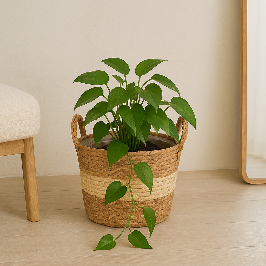 Cesto Cachepot de Palha Natural Com Forro De Plástico Para Vaso