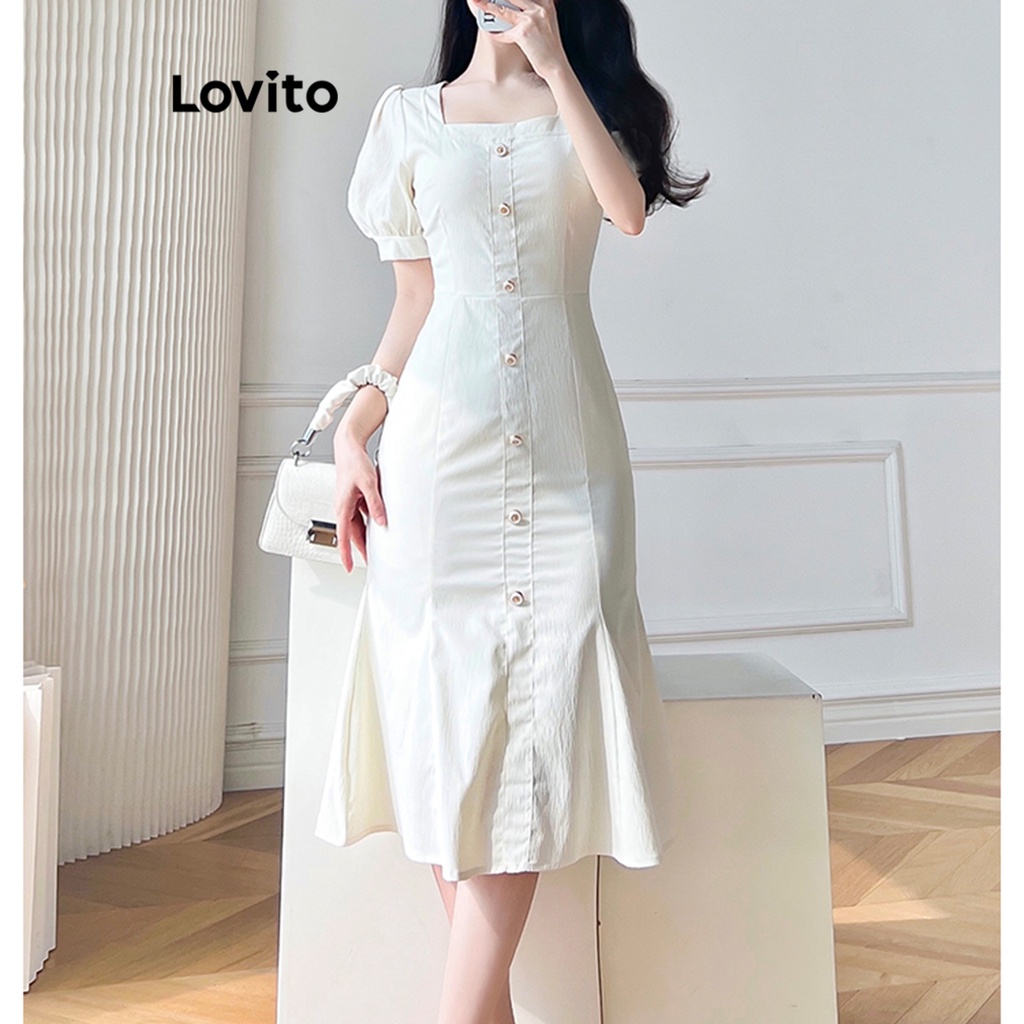 Lovito Vestido Feminino Elegante Com Botões Frontais Lisos E Divididos LNL46179