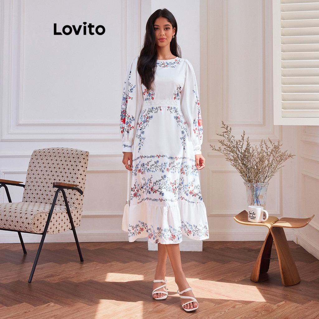 Lovito Vestido Feminino Elegante Com Babados Lisos E Bainha Com Babados LBL08138