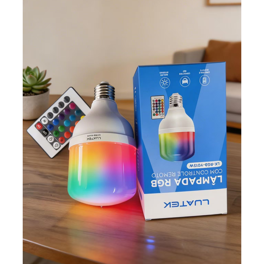 Lampada Led Bulbo 15w Bocal E27 RGB c/ Controle Remoto (LK-RGB-15W)LUATEK