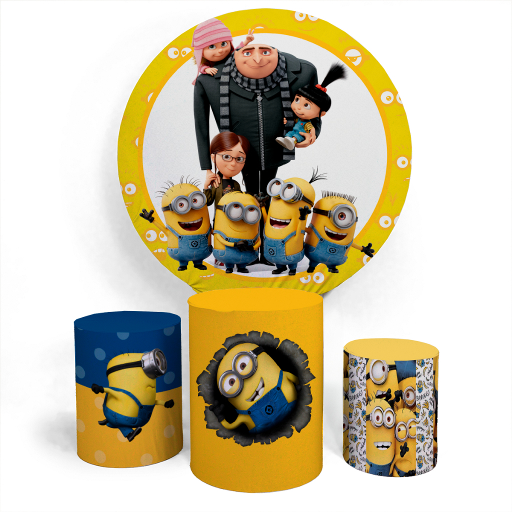 Kit Painel Gru Minions Meu Malvado Favorito Aniversário Comemoração Aniversário Festa + Trio Capas Cilindro Vários Temas