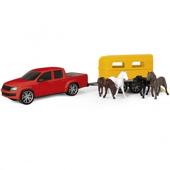 Picape com reboque e 4 cavalos Força e Ação Rodeio Carrinho de Brinquedo Infantil +3a Poliplac 6648