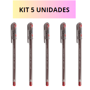 Caneta Esferográfica My Tech 0.7Mm Vermelha. Jocar Office- Kit Com 5 Unidades