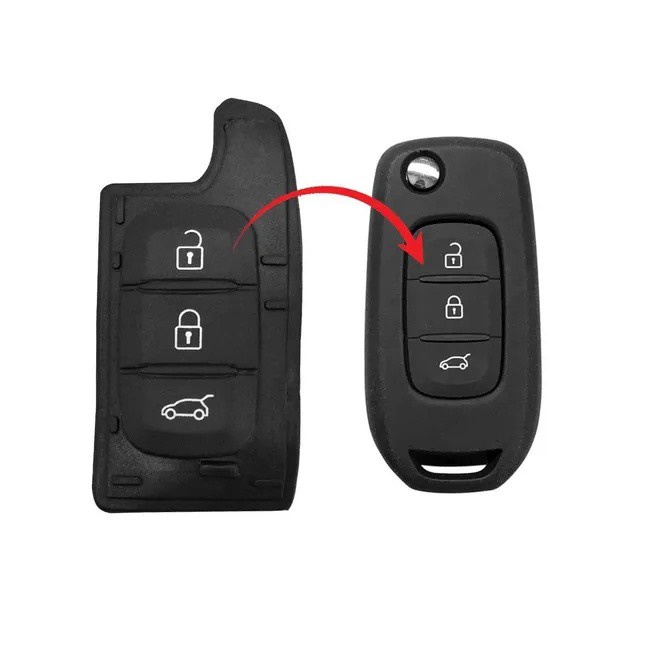 Capa Emborrachada Frontal para Chave Canivete Renault Kwid Sandero Logan Duster Oroch Com 3 Botões