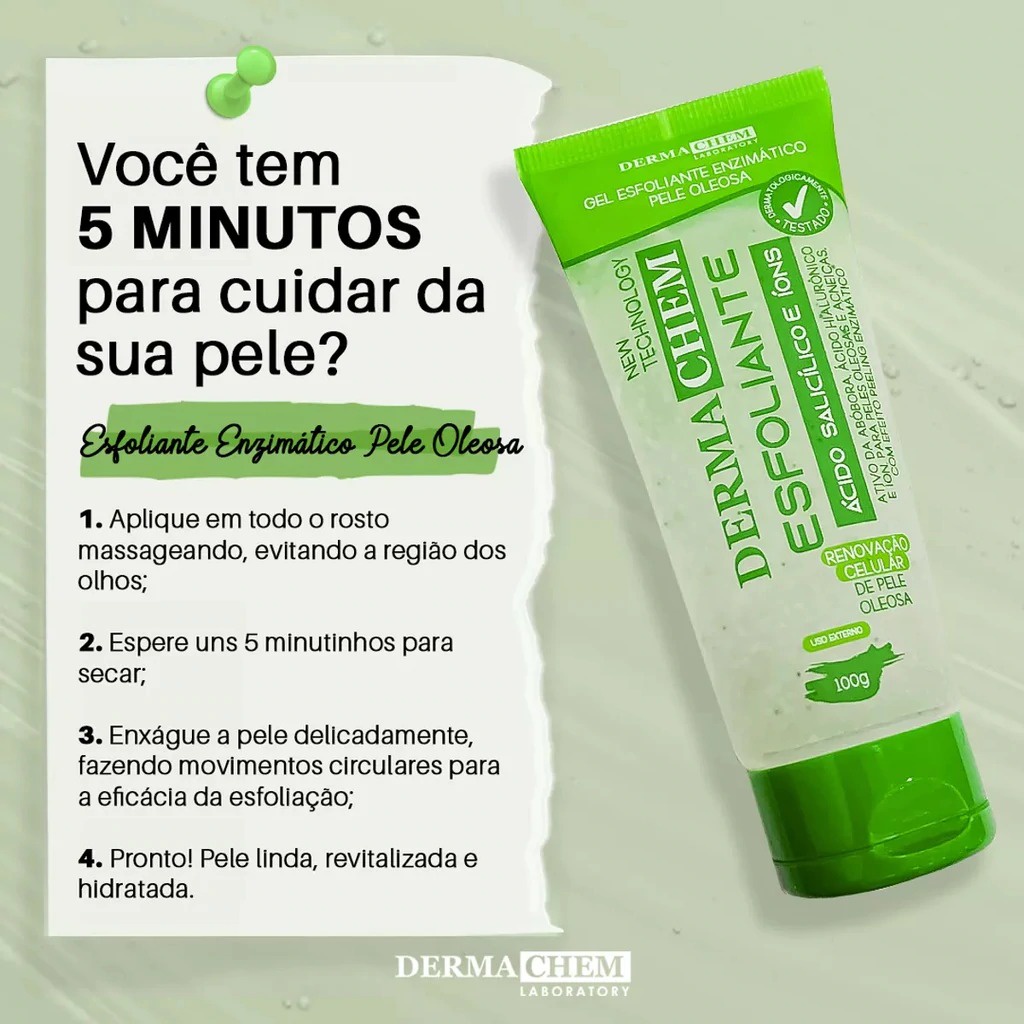 Gel Esfoliante Enzimático com Ácido Salicílico e Efeito Peeling - Renovação para Pele Oleosa - Dermachem 100g