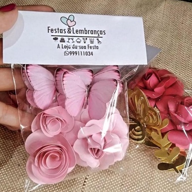 Kit Rosas Papel + borboleta modelo sortido (escolha a cor)