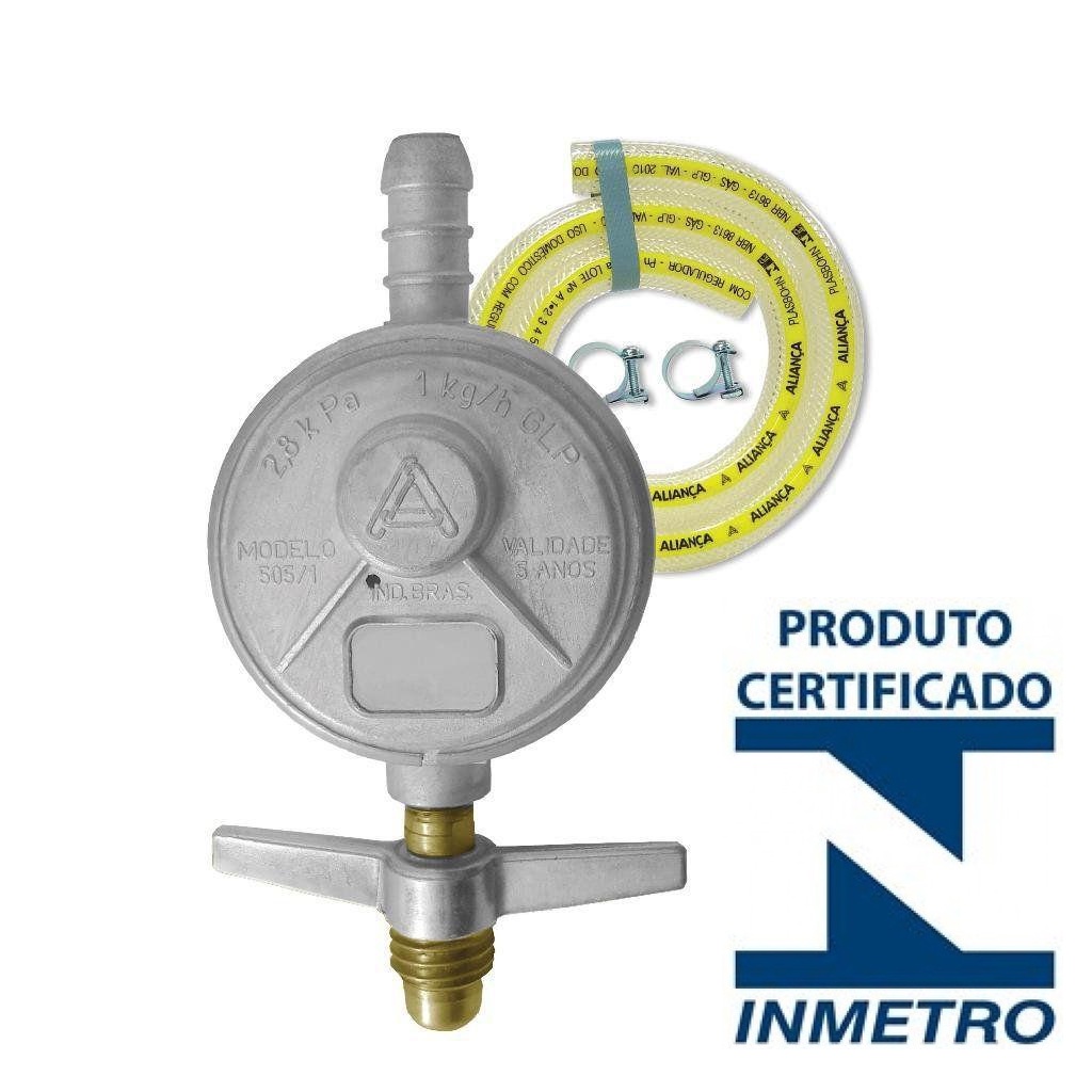 Kit Completo Registro Regulador Gás Aliança 505/01 + Mangueira 1,20 metros + 2 Abraçadeiras para Fogão