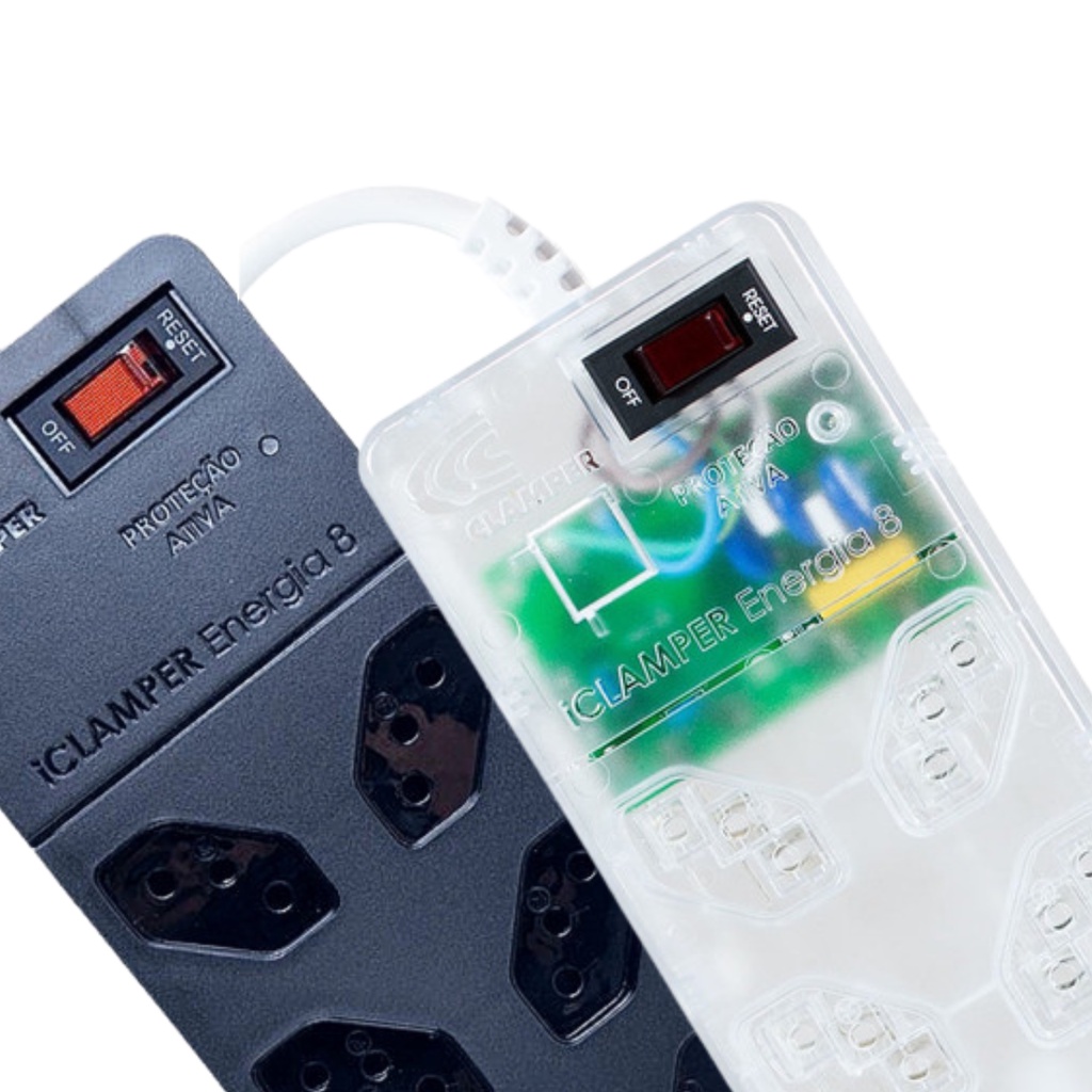 Clamper Filtro de Linha 8 Tomadas TRANSPARENTE - Protetor de surto DPS ANTI RAIO