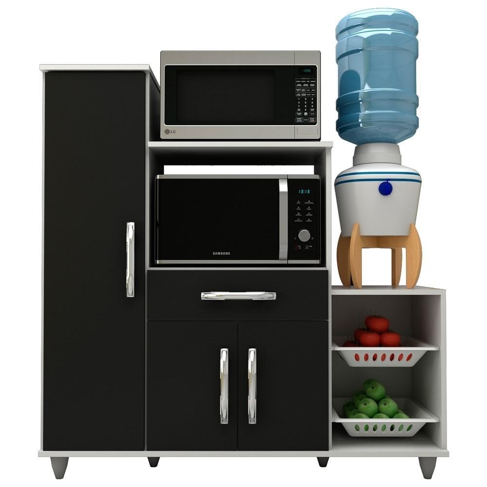 Armário Multiuso Ibiza com Fruteira e Nicho Micro-Ondas Branco/Preto - Lumil