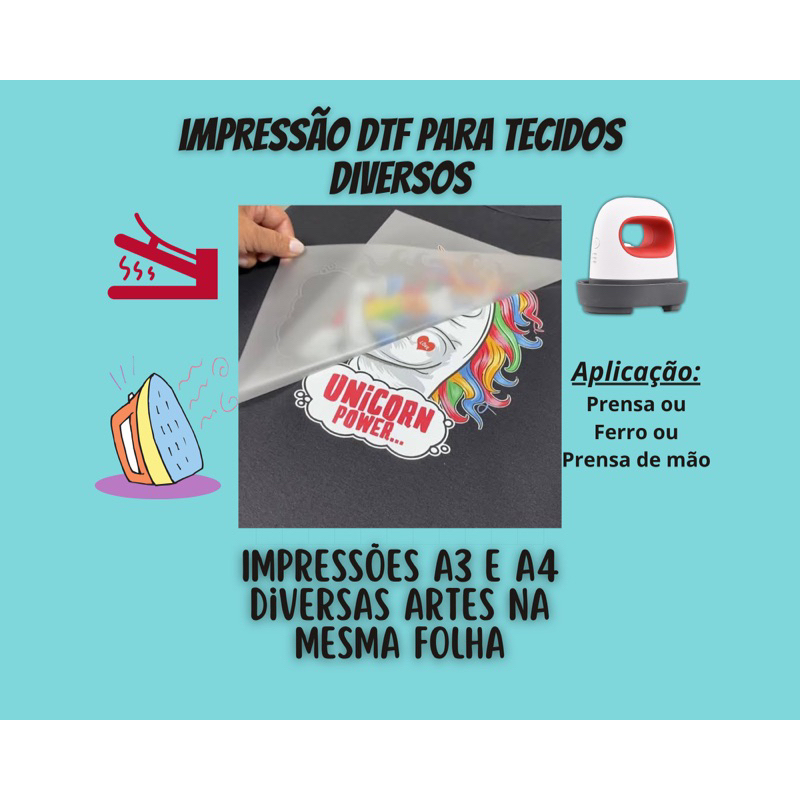 Impressão de Folha A3 ou A4 em DTF Pronto para Aplicação Patch Termocolante - Envie Sua Arte
