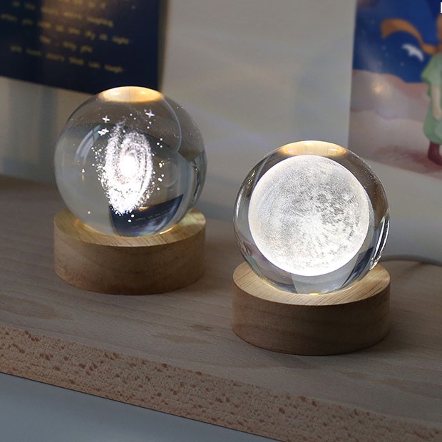 Bola De Cristal Luminosa Com Claro Noturna Para Cura/Galaxy/Baleia/3D/Esculpida/Sistema Solar/Decoração De Lua