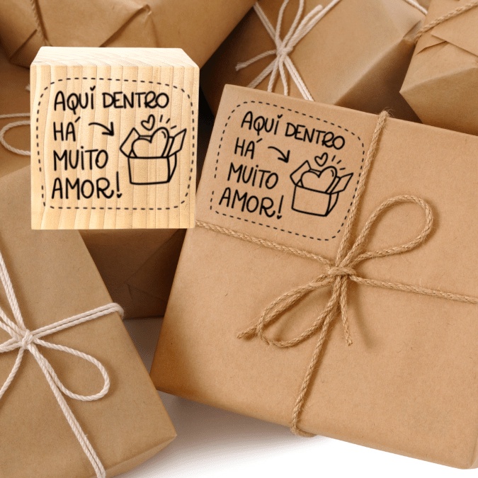 Carimbo feito a mão e com o coração decorativo para embalagens sacolas envelopes kraft caixas envios empreendedores loja virtual artesanato