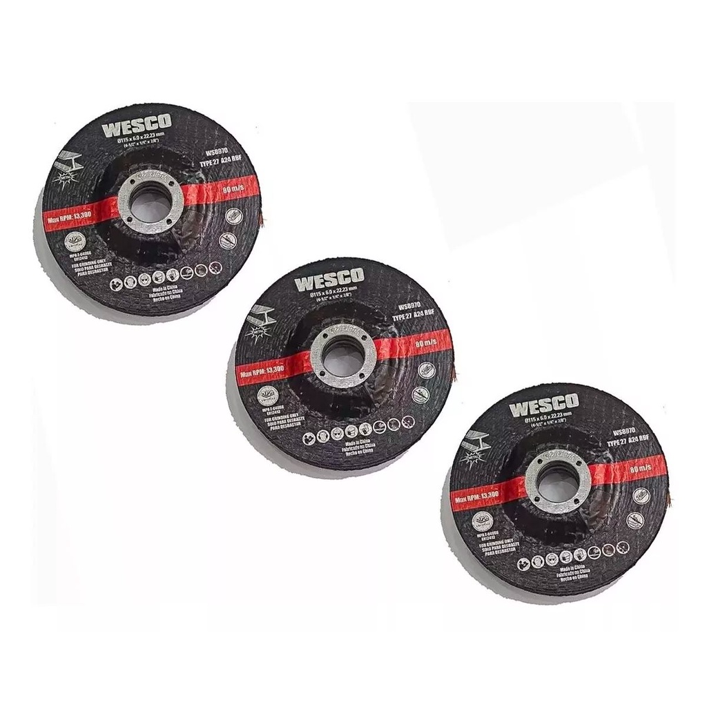 Kit Disco de Desbaste Abrasivo para Metal 115x6mm 3Pçs Wesco