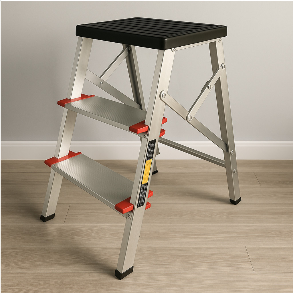 Escada Banqueta Alumínio 2 3 Degraus Portátil Domestica Dobrável Reforçada Ate 100kg