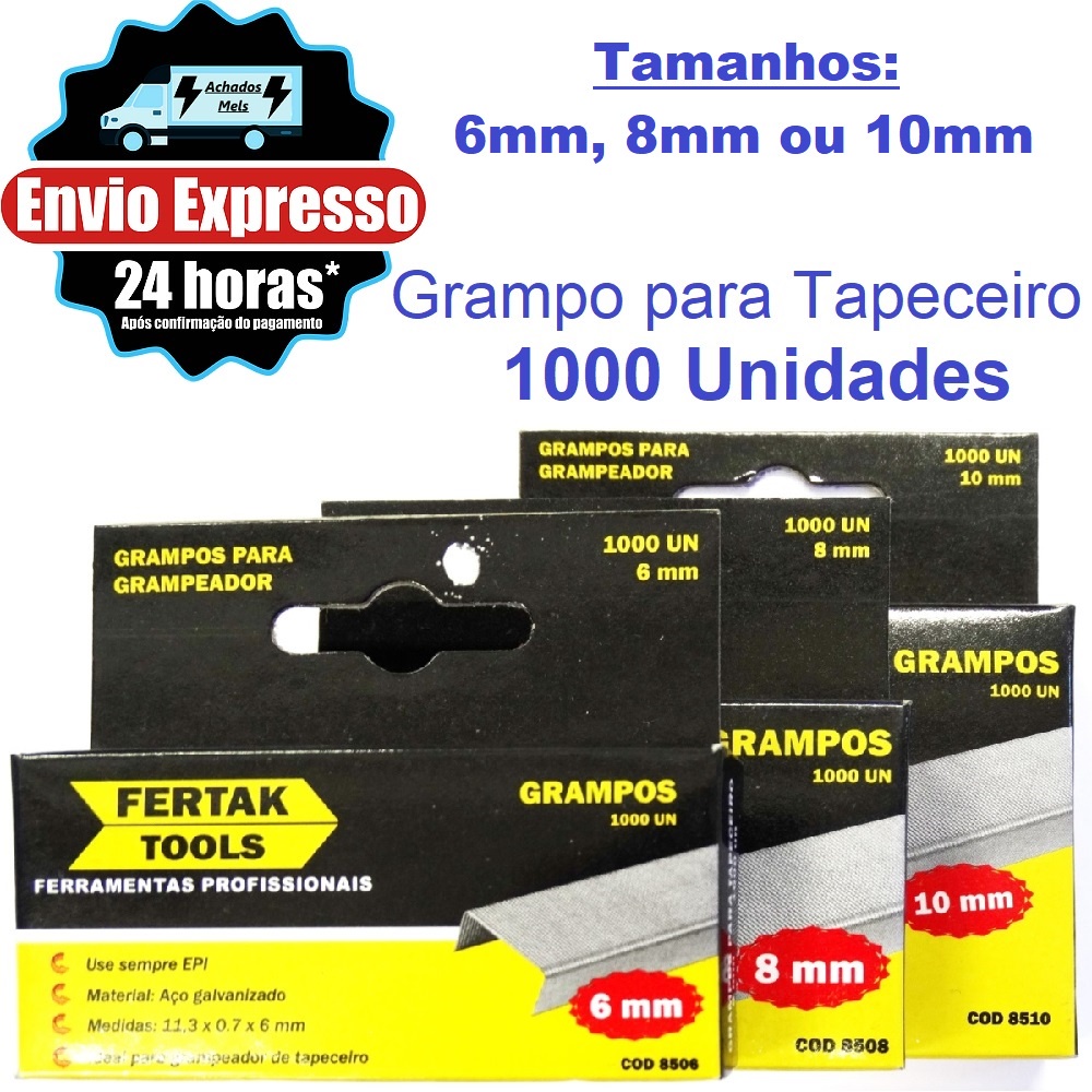 Grampo Grampeador Tapeceiro 6mm, 8mm, 10mm, 12mm ou 14mm Profissional Caixa 1000 Unidades - Fertak