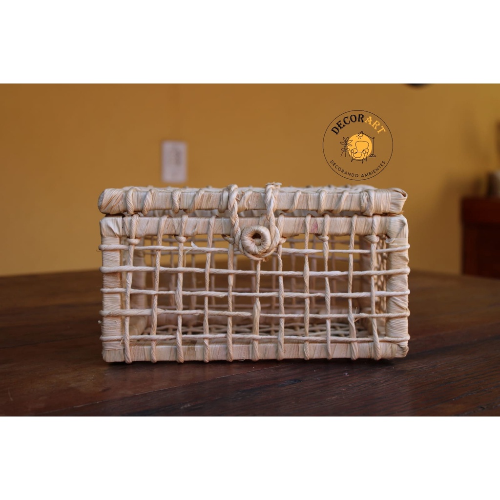 Cesta de Palha de Milho Vime Caixa Organizadora 22x12x08