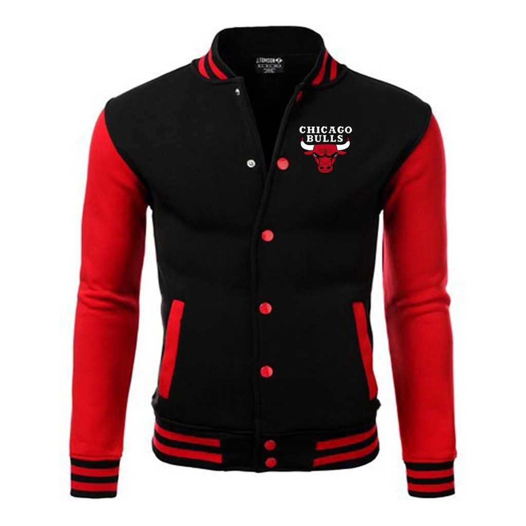 Chicago Bulls Bordado Jaqueta College Moletom Americana, Algodão - Unissex