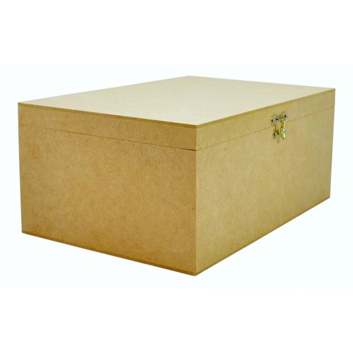 Caixa Retangular Lisa Com Dobradiça e Fecho P/ Cadeado 30x20x10 em Mdf Cru