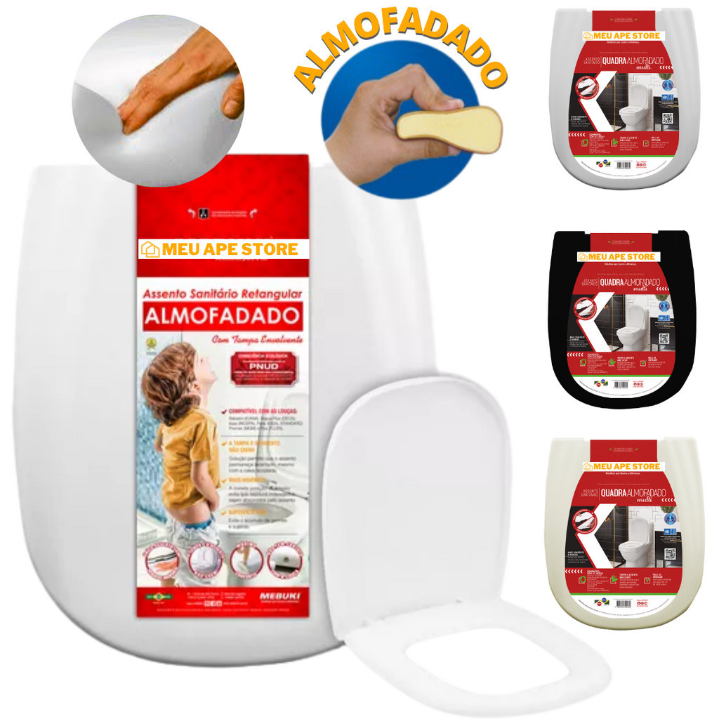 Assento Sanitário Almofadado Quadrado / Retangular 6lpf 4 Cores Tampa Vaso Privada Incepa Onix SantaMarina Mondealli Agnes-T