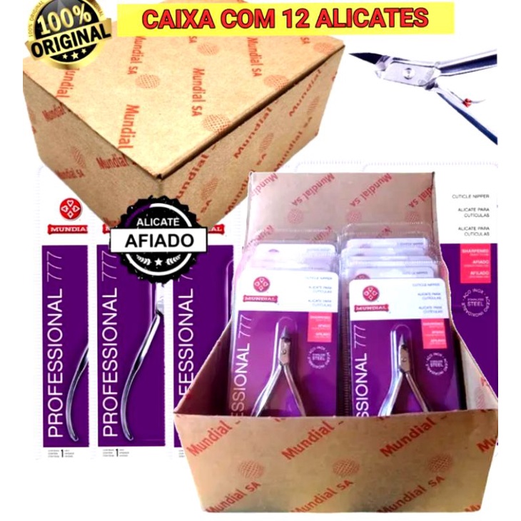 Caixa de Alicate de Unhas Mundial 777 Profissional Caixa com 12 Aço Inox Profissional Com 12 Unidades Original