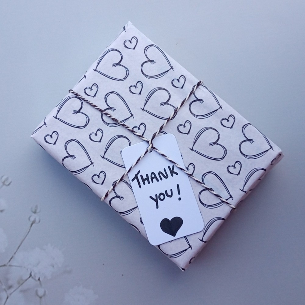 Papel Seda Estampado Coração Black - 50 unid