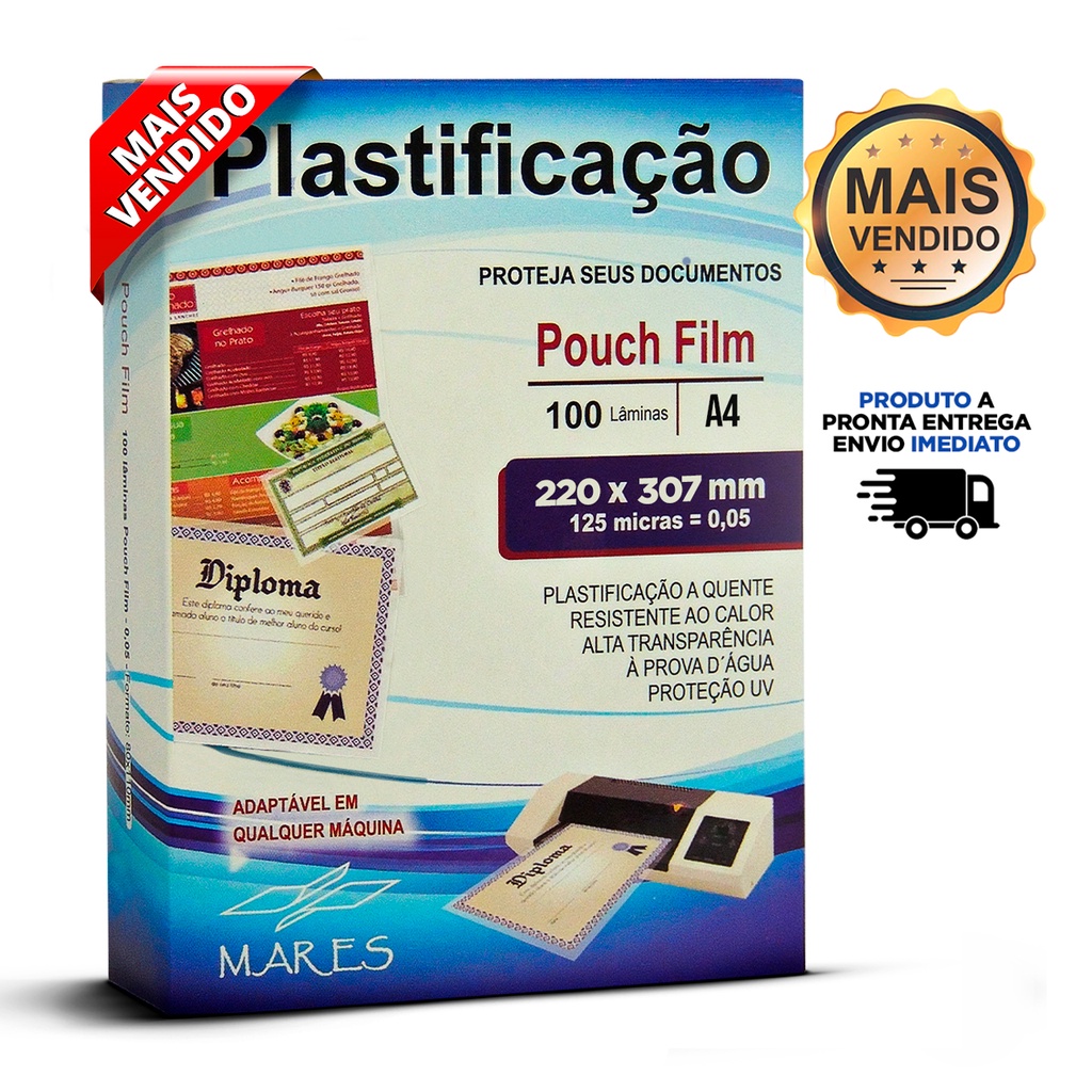 100 Folhas Polaseal A4 220x307 0.05 - Plástico Para Plastificação Pouch Film 125 micras