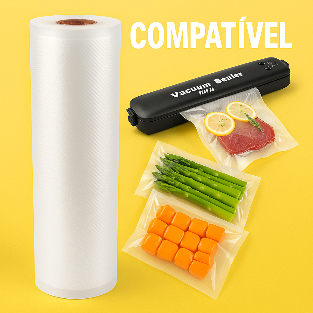 Bobina Rolo a Vácuo com Ranhuras Texturizadas 5m – Para Seladora de Alimentos | Tamanhos 15cm a 28cm