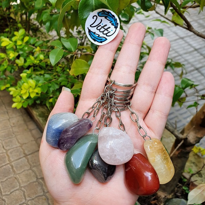 Chaveiro de Pedra Rolada Natural Opções de Pedra