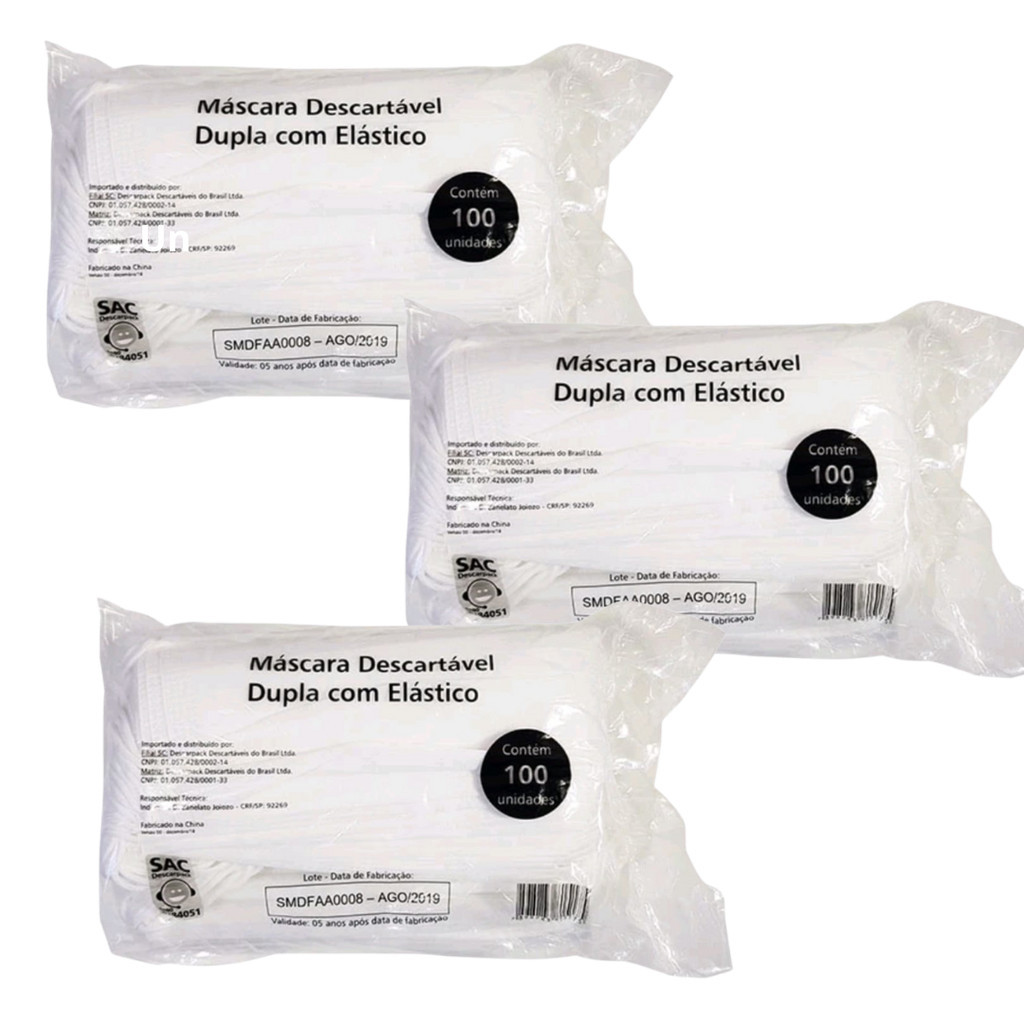 Kit 3 Máscaras Dupla Descartável DPK com 100 unidades Branca