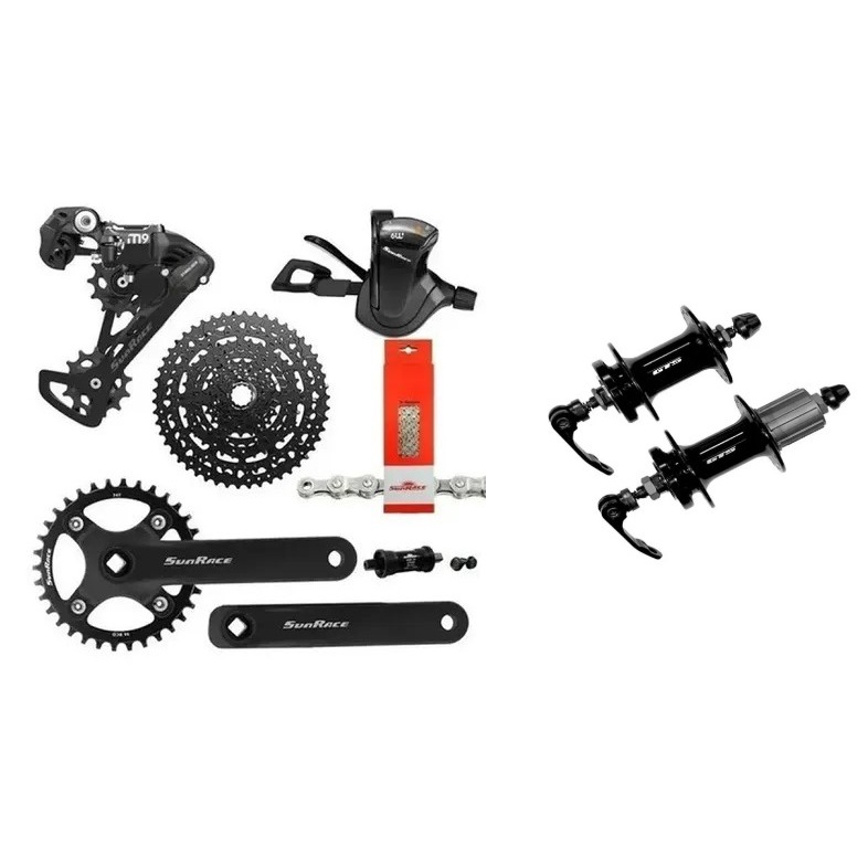 Kit Grupo 9v 1 X 9 Transmissão Sunrace Cassete 11/50 + Cubos